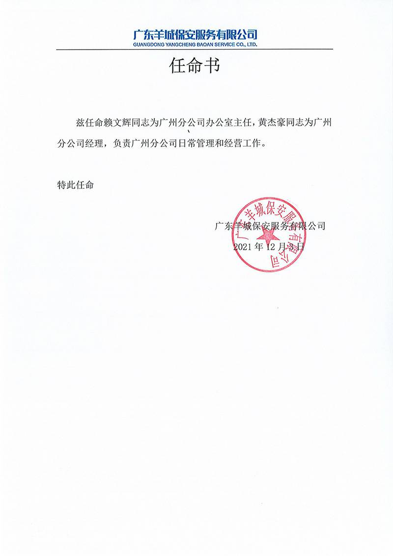 武汉学义电子教育平台有限公司关于黄杰豪与赖文辉的任命书正式通知